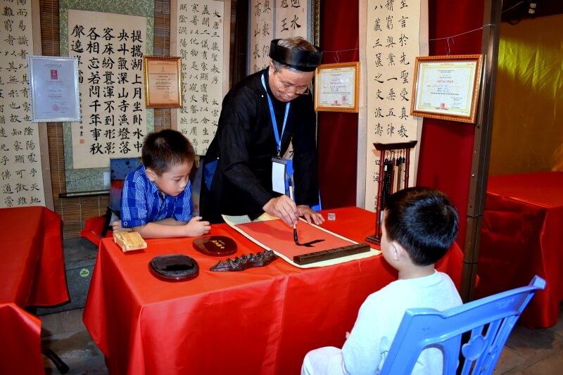 Đây là sự kiện văn hóa đặc trưng nhất tại khu vực Văn Miếu, thường diễn ra trước và sau Tết Nguyên Đán (Tháng 1-2 Dương lịch). Các Ông Đồ (người viết thư pháp) sẽ ngồi viết chữ tại khu vực Hồ Văn (ngay phía ngoài Văn Miếu). Hoạt động này thể hiện truyền thống trọng chữ nghĩa, cầu may mắn, đỗ đạt.