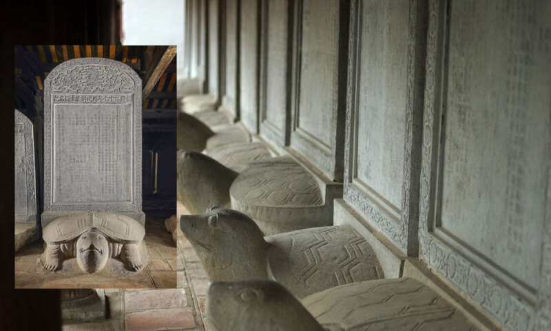Khu vực này là nơi tập trung các Bia Tiến Sĩ được dựng trên lưng rùa đá. Tổng cộng có 82 bia đá, khắc tên, quê quán và thành tích của 1.307 vị tiến sĩ đỗ đạt trong các kỳ thi Đình từ năm 1442 đến năm 1779. Đây là di tích quý giá nhất, thể hiện truyền thống tôn sư trọng đạo và hiếu học của dân tộc. Bia Tiến Sĩ không chỉ là tài liệu lịch sử mà còn là điểm linh thiêng, thu hút học sinh, sinh viên đến tìm hiểu và cầu may mắn trong học tập.