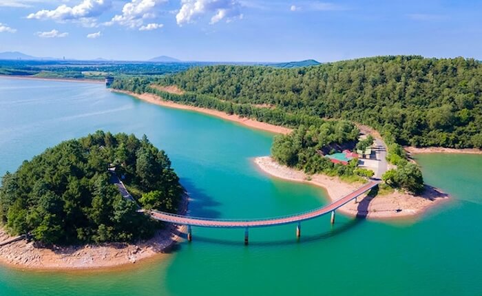 Hồ Kẻ Gỗ: Là công trình thủy lợi lớn và đẹp nhất Hà Tĩnh, thuộc huyện Cẩm Xuyên, có vai trò quan trọng trong sản xuất nông nghiệp và điều tiết lũ. Hồ được bao quanh bởi rừng thông xanh mát và cảnh vật hoang sơ, tạo nên một không gian yên bình, thoáng đãng. Du khách có thể đi thuyền ngắm cảnh, câu cá, hoặc khám phá hệ sinh thái đa dạng xung quanh hồ. Gần đó còn có đền thờ cố Tổng Bí thư Hà Huy Tập, rất đáng ghé qua để tìm hiểu lịch sử và thắp nén tâm hương. Ai mà yêu thiên nhiên, thích vibe yên bình kiểu “ẩn mình khỏi phố thị” thì Hồ Kẻ Gỗ đúng chuẩn điểm trốn mệt mỏi luôn