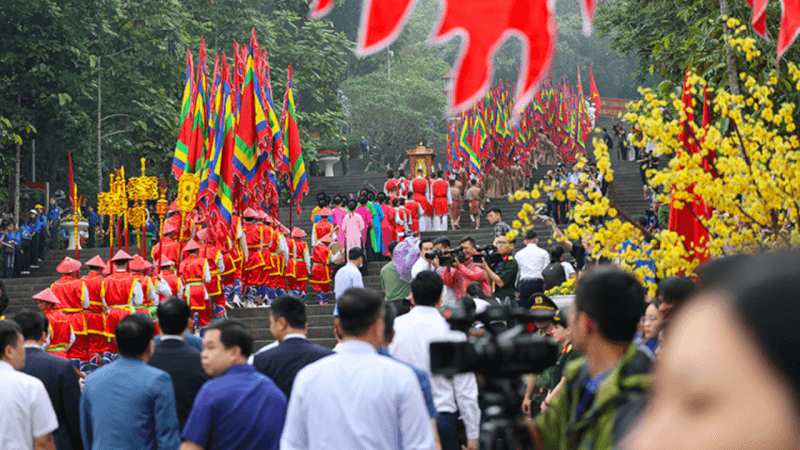 Lễ hội Giỗ Tổ Hùng Vương: Đây là sự kiện linh thiêng nhất, nơi triệu triệu người con đất Việt cùng nhau hướng về để tôn vinh công lao dựng nước của các Vua Hùng và thể hiện đạo lý "Uống nước nhớ nguồn". Vào ngày diễn ra lễ hội, hàng nghìn người dân từ khắp các vùng miền của đất nước lại đổ về đền Hùng để tham gia các hoạt động tưởng nhớ và tôn vinh các vị vua Hùng. Lễ hội Đền Hùng có ý nghĩa sâu sắc đối với đời sống tâm linh của người dân Việt Nam, được tổ chức để tưởng nhớ và tôn vinh công lao dựng nước và giữ nước của các vị vua Hùng. Hãy đến để đắm mình trong không khí trang nghiêm nhưng vô cùng náo nức kéo dài nhiều tuần. Bạn sẽ được chứng kiến tận mắt những nghi thức rước kiệu sơn son thiếp vàng, cờ hoa rực rỡ, cùng với phần lễ hoành tráng tại Đền Thượng. Việc tham gia vào Lễ hội Đền Hùng không chỉ là một chuyến du lịch, mà còn là cơ hội để bạn kết nối sâu sắc với Di sản Văn hóa Phi vật thể Quốc gia và cảm nhận trọn vẹn tinh thần đoàn kết và niềm tự hào dân tộc!