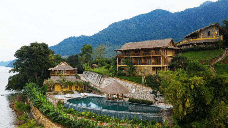 Mai Châu Hideaway Lake Resort - Top Resort đẹp nhất Tây Bắc được biết đến như một khu nghỉ dưỡng sinh thái nằm trên bán đảo xinh đẹp cạnh hồ Hòa Bình bốn mùa rực rỡ cảnh sắc núi rừng Tây Bắc.. Mỗi một góc từ resort đều có thể nhìn thấy toàn cảnh lòng hồ trên lưng chừng núi! Chỉ cần nghe tiếng gió thổi nhẹ qua tai, thoang thoảng mùi hương thơm của cỏ cây núi rừng và ngắm nhìn những gợn sóng nhỏ lăn tăn trên mặt hồ sẽ giúp cho du khách có được những giây phút thư giãn và tâm hồn như được kết nối với thiên nhiên