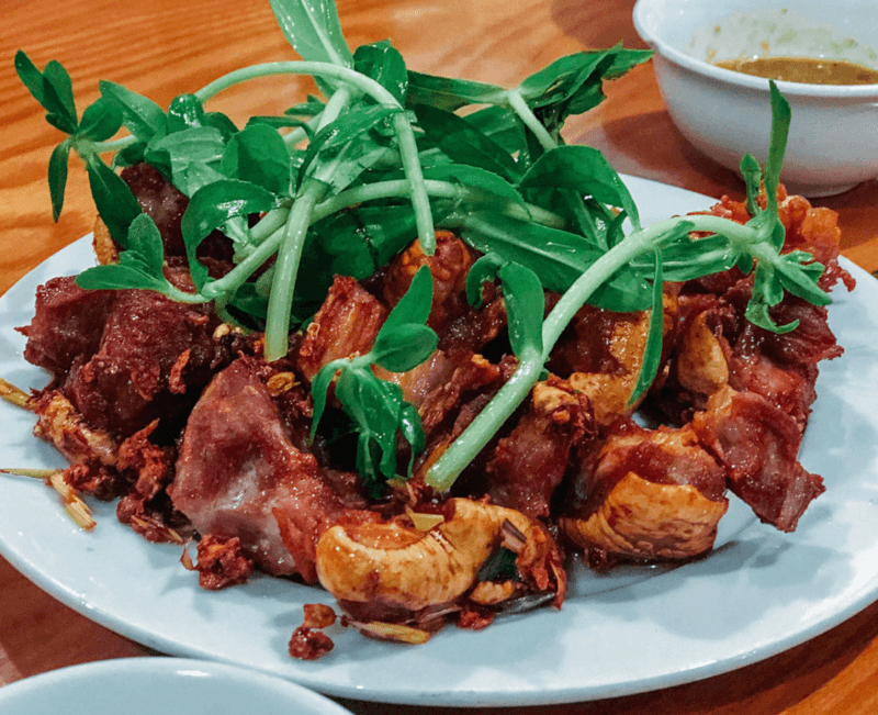 Nếu bạn muốn thưởng thức món bê chao trứ danh của Mộc Châu, Quán 75 là địa chỉ không thể bỏ lỡ. Đây là một trong những quán ăn lâu đời và nổi tiếng nhất với món bê chao được chế biến vừa tới, thịt mềm ngọt, da giòn, chấm cùng nước tương đặc trưng. Không gian quán rộng rãi, bình dân, luôn tấp nập khách địa phương và khách du lịch. Món ăn được phục vụ nhanh, giá cả hợp lý. Giá tham khảo khoảng 150.000 – 350.000 VNĐ/người, tùy vào số lượng món gọi. Ngoài bê chao, quán còn phục vụ nhiều đặc sản Tây Bắc khác.